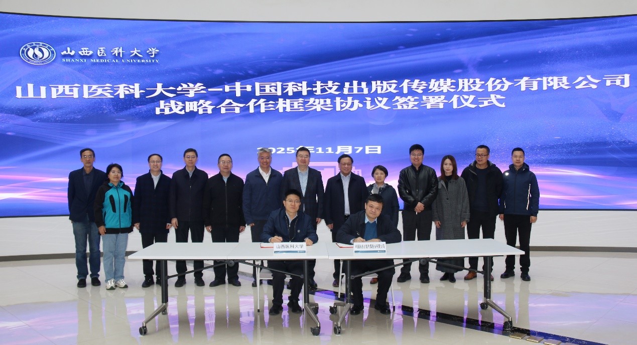 11月7日上午, 山西醫(yī)科大學(xué)—中國(guó)科技出版?zhèn)髅焦煞萦邢薰緫?zhàn)略合作框架協(xié)議簽署儀式在山西醫(yī)科大學(xué)圓滿舉行,雙方攜手開(kāi)啟共筑學(xué)術(shù)高地、服務(wù)醫(yī)學(xué)創(chuàng)新的新篇章。
